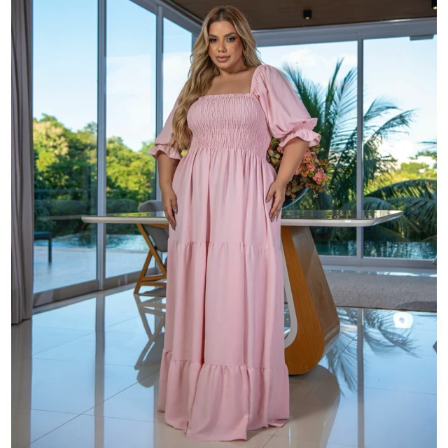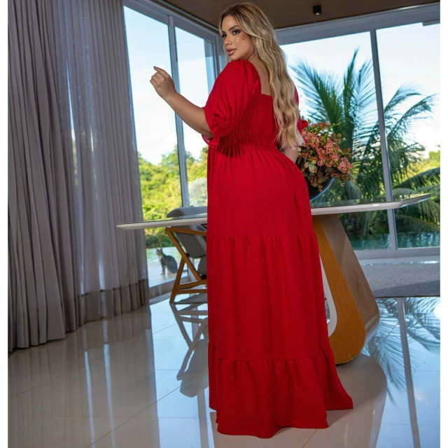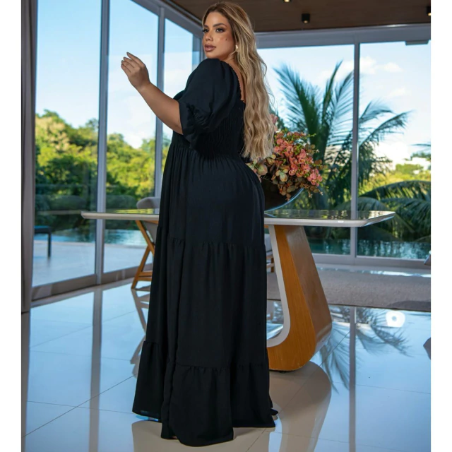 Vestido Longo, confeccionado em tecido Duna .  Seu corte trás movimento e leveza na peça, proporcionando estilo e conforto, podendo ser usado tanto durante o dia, quanto durante a noite.